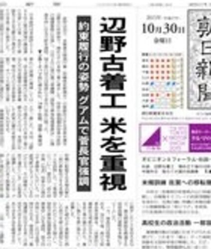 なぜ、 安倍極右カルト内閣は狂ったように国民に暴力を振るいながら辺野古移設を強行するのか。 その理由をきょうの朝日新聞が書いている。 2013年の安倍首相とオバマ大統領との初会談ですべてが始まった。 安倍政権発足間もない2013年の2月、訪米…